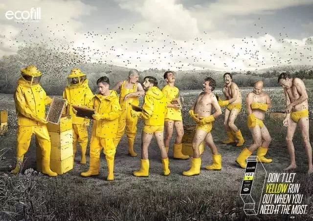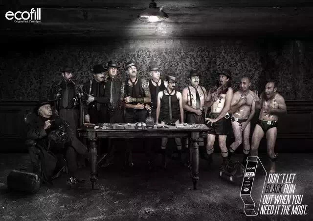 不给打印机及时加墨,就像关键时刻没穿衣服,这思维跳跃的,还有,你以为四张图片里衣服的颜色是凭心情上色吗?NO,青色、洋红、黄色和黑色的衣服正代表了品牌商不同颜色的墨水。让TOP君不禁感叹:你们这些家伙真会玩儿!